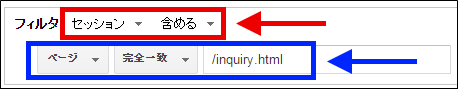 「ページ」「完全一致」「/inquiry.html」(図4青枠部分)