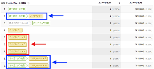 - 既存ユーザーはノーリファラーの連続でコンバージョン(図10赤枠部分)