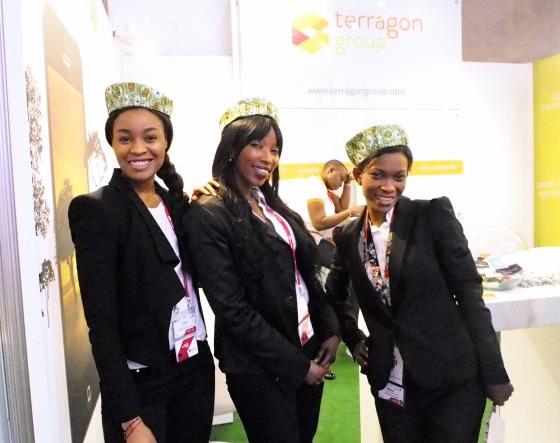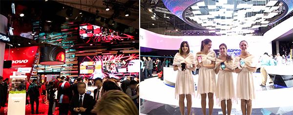 (右)ZTEのコンパニオン。バルセロナのセニョリータたち