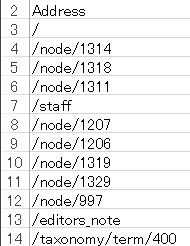 もう1つ、やらなければいけないことがある。2つのデータを統合するには、どの行がどのURLに関するものかを判断できるようにする必要があるしかし、Screaming FrogのデータでURLを示す「Address」はドメイン名を含んだ全URLだが、GoogleアナリティクスのデータでURLを示す「ページ」はドメイン名を含んでいないパスだけだ。