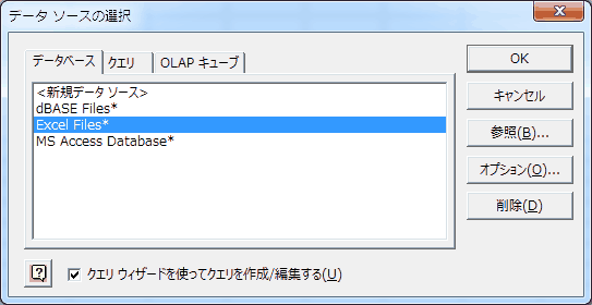 「データ」タブの「その他のデータソース」から、「Microsoft Query」を選択する。