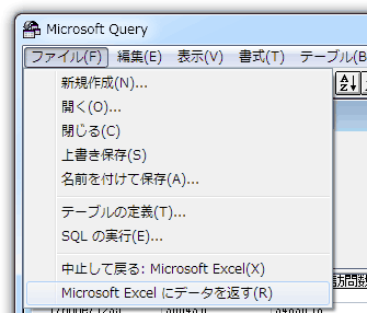 メニューの[ファイル]>[Microsoft Excelにデータを返す]をクリックする。