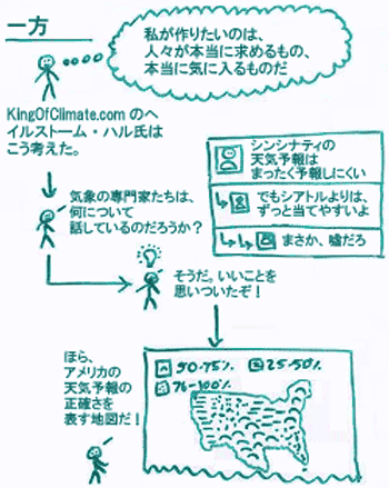 ここで2つの例をお見せしよう。仮にレイニー・ビル氏と、ヘイルストーム・ハル氏とでもしようか。どちらも、気象関連のメディアを運営している人だと考えてほしい。