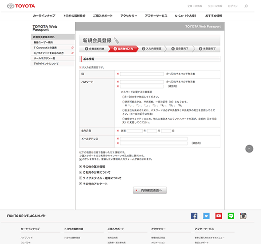 エントリーフォームの完了率アップのためには、フォームからの離脱をいかに減らすかを考えることが重要です。今回「惜しい!」エントリーフォームとして紹介するのは、トヨタ自動車株式会社様の「Web Passport 新規会員登録フォーム」です。
