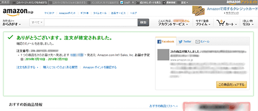 Amazonの購入完了ページでは、注文した内容詳細やよくある質問、ポイント確認などのリンクが用意されていたり、フォームでは消えるグローバルナビゲーションが復活したりなどします。