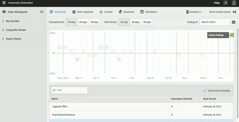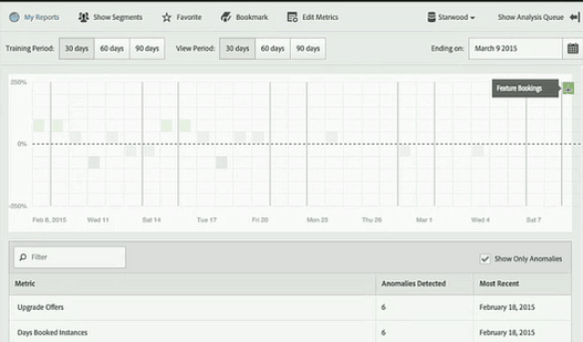 実際の例で見てみよう。スターウッドのサイトで、あるときに予約数が通常よりも大幅に増えていたとする。こうした異常値が発生した場合、それが良いことであれ悪いことであれ、その原因を探りたいと考えるだろう。