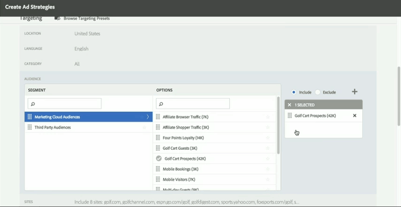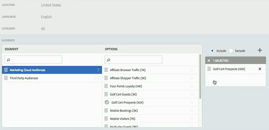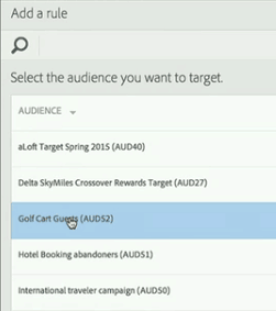 対象のオーディエンスとして、「ゴルフカートゲスト」を選択した。これが、先ほど作成したセグメントだ。