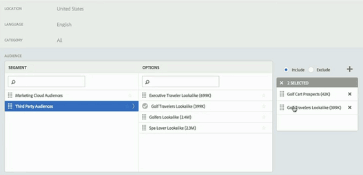 これは、Adobe Audience Managerの管理画面で、あらかじめ統合していたサードパーティのデータを利用して実現できる。