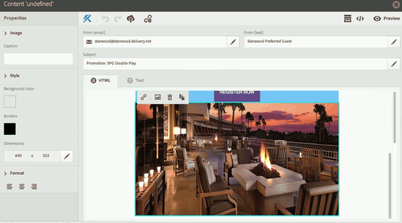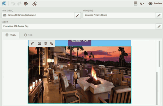 HTMLメールには、一般的なホテルのレストランの画像があらかじめ用意されているが、今回は、これをゴルフ好きな人向けの画像に変更するほうがいいだろう。