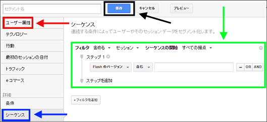 今回のセグメントの条件設定は、図3緑枠部分で行う。