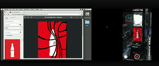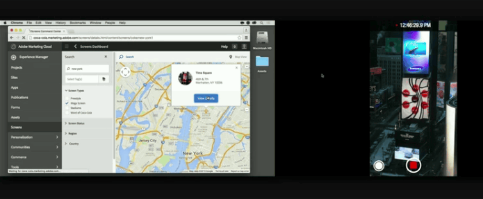 続いて、同じくAEM Screensを用いて、ニューヨークタイムズスクエアの大型スクリーンの画像を差し替えるデモが行われた。