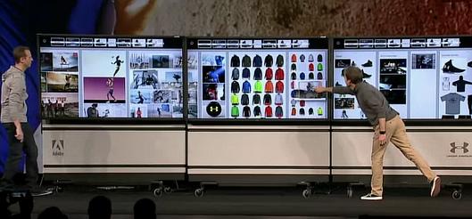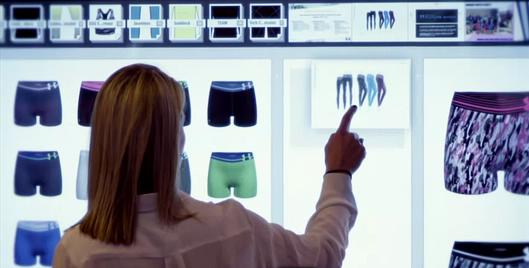 米スポーツアパレルブランドであるアンダーアーマーの店舗では、デジタルスクリーンが導入されている。これにより、店舗内で商品説明の閲覧ができるほか、シューズの色や形の組み合わせをカスタマイズして注文ができる体験型のコンテンツを提供している。