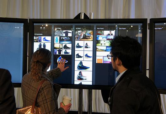 スクリーンをタッチして商品画像などを動かせる仕組みだが、かなりリッチに作られていることが、デモで示された。