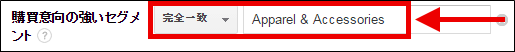 設定は文字どおり図6のように指定しよう。「購入意向の強いセグメント」の横の設定を、「完全一致」「Apparel & Accessories」(図6赤枠部分)とする。