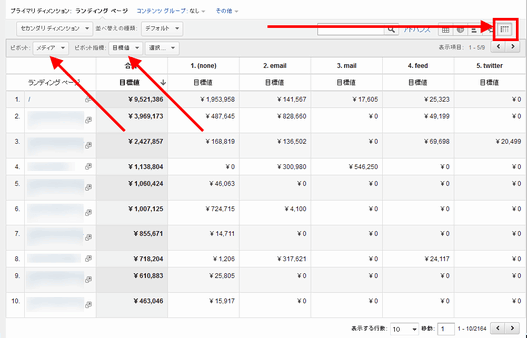 GAのレポート画面上で、実はピボットテーブルを作れます。2つ以上の軸でデータを見たい場合には便利です。