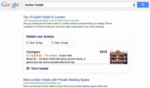 こうした情報を把握していれば、たとえば「best hotels in London」(ロンドンのおすすめホテル)と検索した場合、通常表示される結果ではなく、はるかにパーソナライズされ、しかもきわめて重要なことに、はるかに有益な結果が表示されることになる。