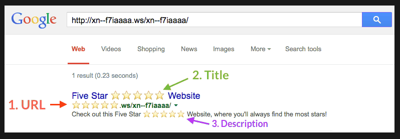 絵文字ドメイン名が検索ユーザーの目を引くのは間違いないだろう。しかしそれがクリックにつながるかどうかは別問題だ。それに、この手法が横行すればグーグルはきっと対応してくるはずだ。