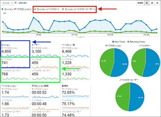 セッション数ベースで比較すると(図7青枠部分)、ノーリファラーは全体の15%程度を占め、決して少ないとは言えない割合になっている。