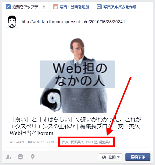 最近、Web担のコンテンツFacebookでシェアすると、次のような表示になるように修正しました。