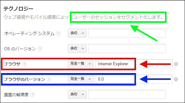 問題のあるブラウザのバージョンに絞り込むセグメントの作り方