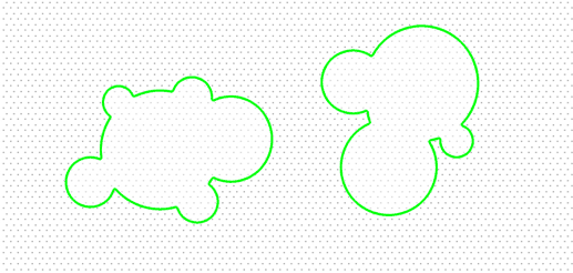 下の画像がウェブを表したものだと想像してみてほしい。1つひとつの点は、インターネットの1つのページを表しており、その中で、グーグルがインデックス化した部分を緑色で囲んである。
