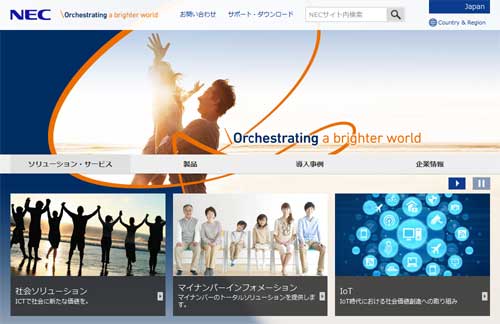 NECの海外事業の比率は、2014年度の実績では約20%、現在は25%の早期実現を目指している。Webサイトのグローバル統合も、そのための強化策の一環である。また、NECの海外事業は地域によって得意とする分野が異なるため、地域統括法人を軸とした現地主導型で事業運営を行い、北米/中南米/EMEA/中華圏/APACの5極体制になっている。