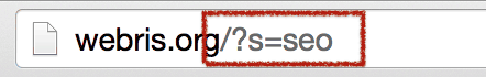サイト内検索結果ページのURLを見る(以下のスクリーンショットを参照)。