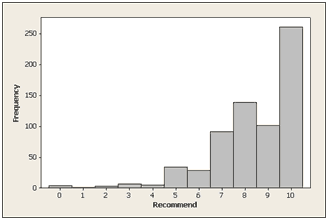 トップボックス・スコアリングが NPS のような評価尺度データとともに使われるもう1つの理由は、NPSデータが正規分布しないため統計計算が正確ではないのではないかという懸念を持つ人が多いためです。