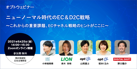 株式会社オプトは、2021年6月25日(金)に「ニューノーマル時代のEC & D2C戦略~これからの重要課題、ECチャンル戦略のヒントがここに~」をオンラインで開催いたします。