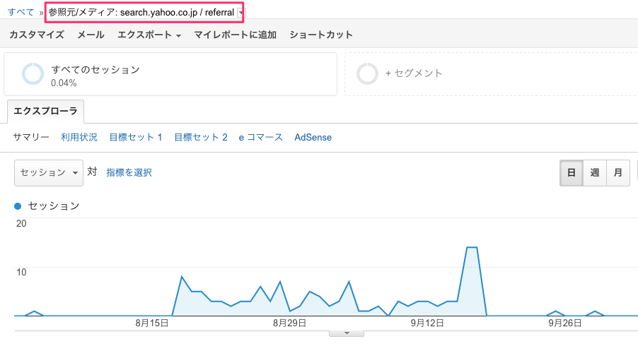 その証拠に、Googleアナリティクスでは、「search.yahoo.co.jpを参照元とする参照トラフィック」がなくなっている。