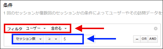 | いずれかのユーザー(OR): | 過去に5回以上訪問しているユーザー |