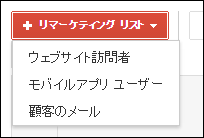 ここで「+ リマーケティング リスト」(図10緑枠部分)をクリックすると「ウェブサイト訪問者」「モバイルアプリ ユーザー」「顧客のメール」を選択するプルダウンが表示される。