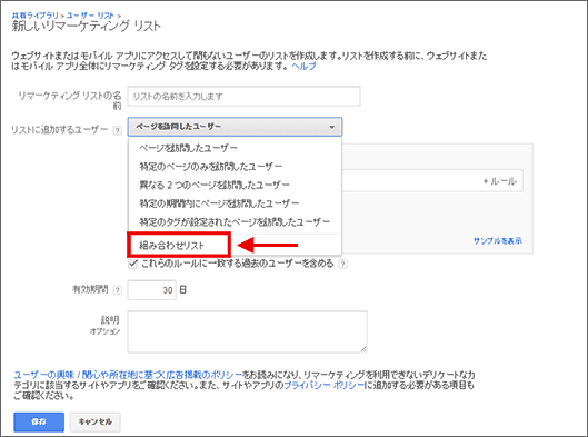 「リストに追加するユーザー」のプルダウンから「組み合わせリスト」を選択(図12赤枠部分)すれば図13の画面になる。