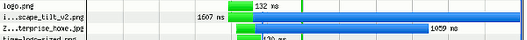 たとえば、以下の図では、青色のセクションの長さから、PNG画像のダウンロードに時間がかかっていることがわかる。