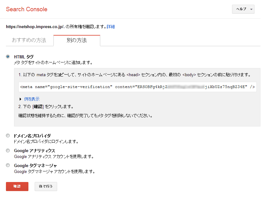 この「HTMLタグ」方式でサイトの管理権限を確認するには、HTMLコードを扱った経験があるユーザーやサイト所有者に最も適している。