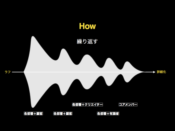 - ユーザー視点の創造のために、アイデアの発散、探索、収束を何度も繰り返す