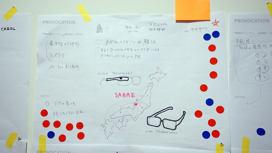 会場は8つのチームに分かれ、全3回のアイディエーションを行った。アイディエーション後は、参加車全員で、出されたアイデアに対して投票を行った。