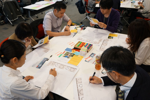 続いて、ワークショップが行われた。ワークショップの目的は、事前に用意されたストーリー、ペルソナ、CJMをもとに、参加者どうしで施策のアイディエーション(アイデア出し)を行うことだ。