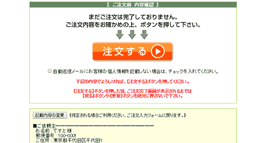 送信が未完了だと文章で伝えることも大事ですが、記事冒頭に「注文するボタン」を大きく配置することも有効です。
