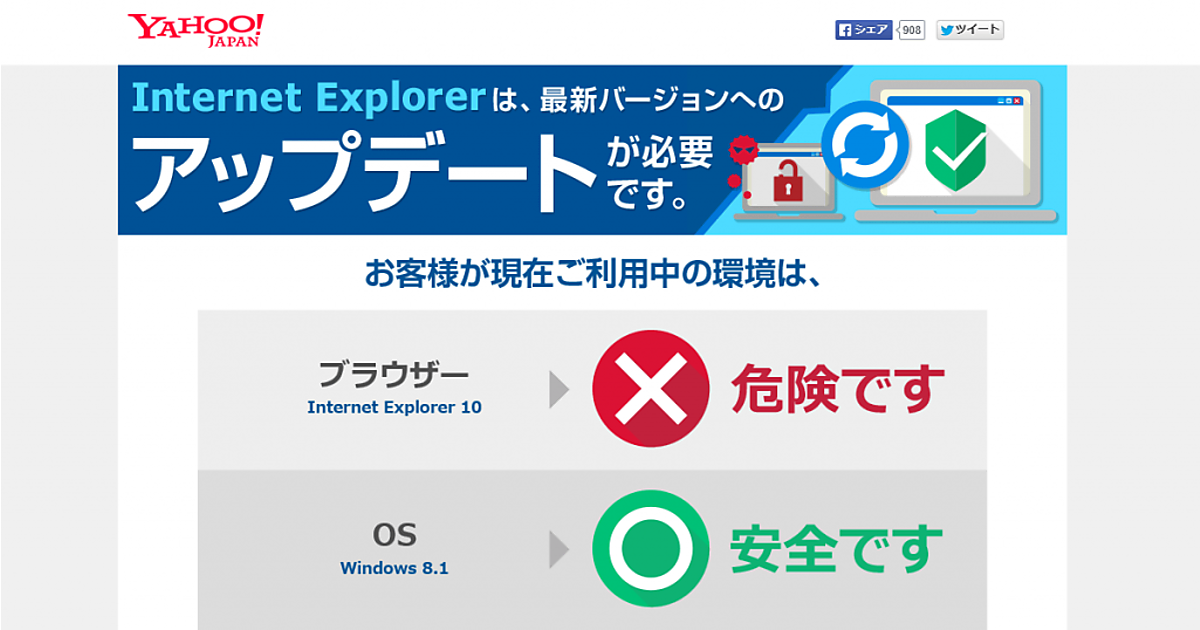 最新IEへのアップデートを促すヤフーの取り組み