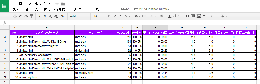 GoogleアナリティクスAPI、よく使われる社内レポート
