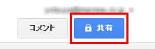 Googleスプレッドシート右上にある「共有」という青いボタンをクリックします。