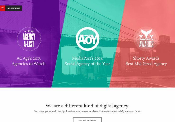 デザイン事務所のサイトを訪れるユーザーは、その会社のスキルを見たがっている。Big Spaceshipのようなデザインエージェンシーは賢明にも、自らのデザインスキルをユーザーに一目でわかるようにして売り込んでいる。基本的に、トップページはページ全体が製品紹介画像として、同時にセールスページとして機能する。