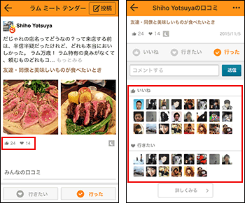 また、サービスのなかでユーザーさん同士のコミュニケーションが取りやすい設計をしています。たとえば、いいねの他に、行きたいといったボタンがあります。