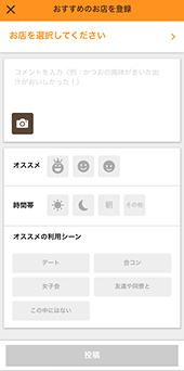 また、その投稿をタッチしてもらうと「写真を投稿する」「口コミを書く」を選択して投稿できるようになっています。