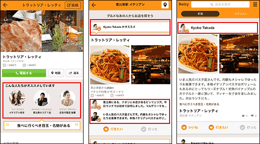 あとは、人の温度感を大事にしたいので、情報設計のなかで人の顔(アイコン)を優先的に出すUIにしています。ほぼすべてのページにおいて、人の顔が最初にあって、その後お店の情報や口コミなどが表示されるように情報設計をしています。人がお勧めしていることに自然と気づけるようなリアルに近いUI設計を心がけています。