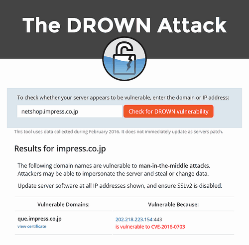 - DROWNぜい弱性の影響をチェックするDROWN Attack