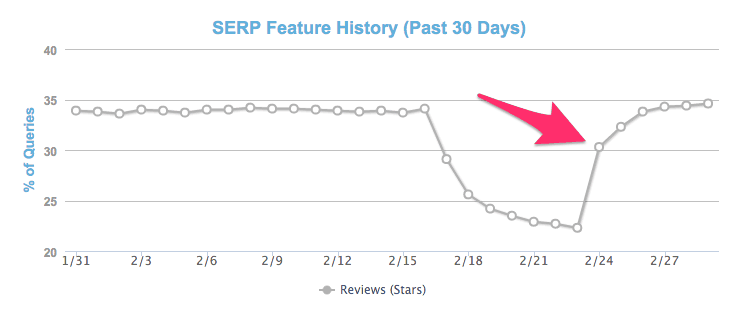 MozCastでのレポートでも、レビューのリッチスニペットが表示される検索結果の割合が元に戻っているのがわかる。