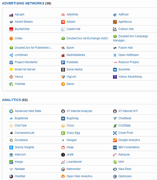 同様のツールで「Ghostery(Firefox用・Chrome用)」を使っている方も多いかと思いますが、Wappalyzerのほうが幅広い情報を調べられますね。