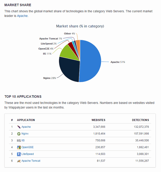 Webサーバーのマーケットシェア情報はこんな感じですね。